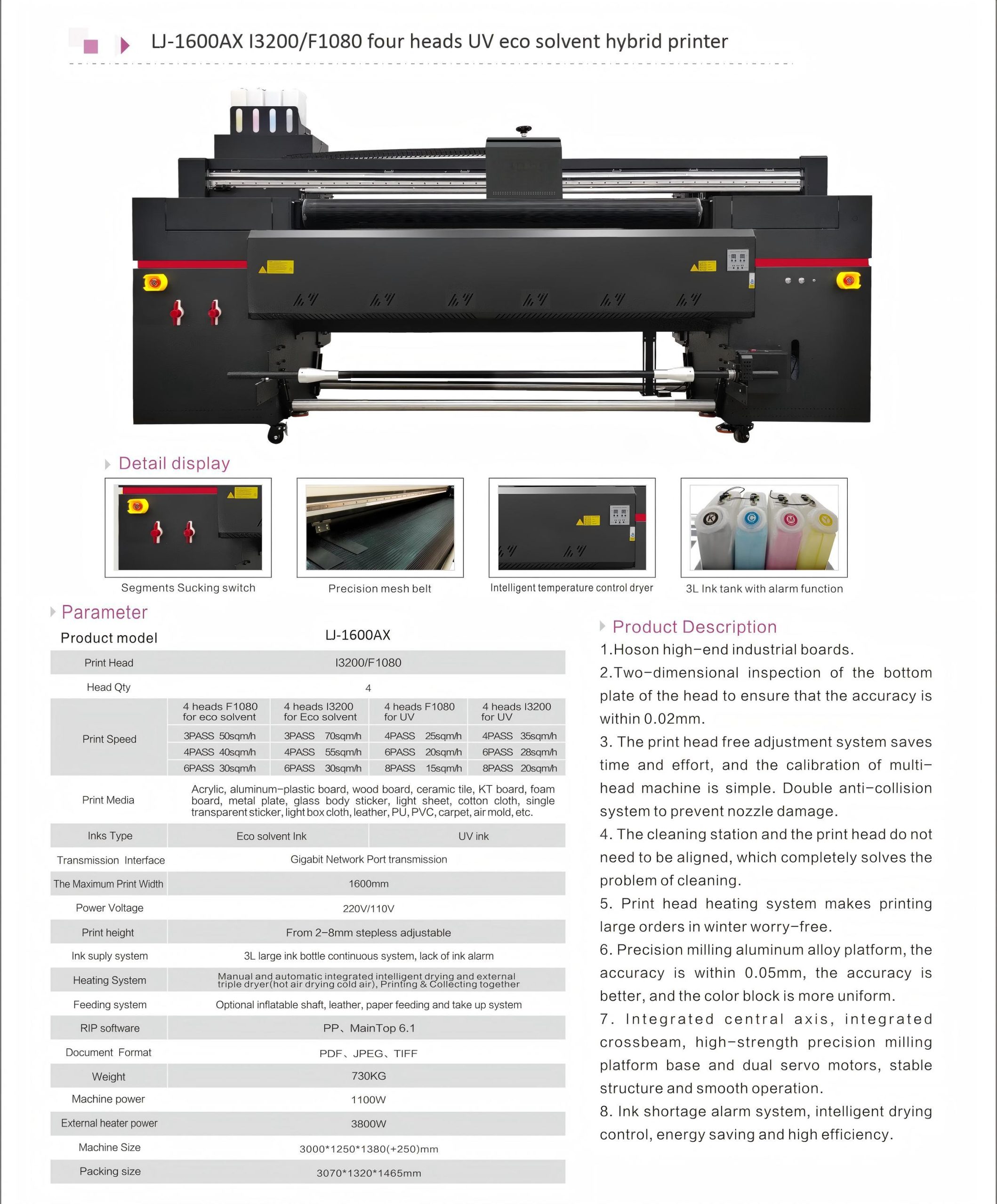 LJ-1600AX 4 PrintHeads Eco Solvent Hybrid Printer