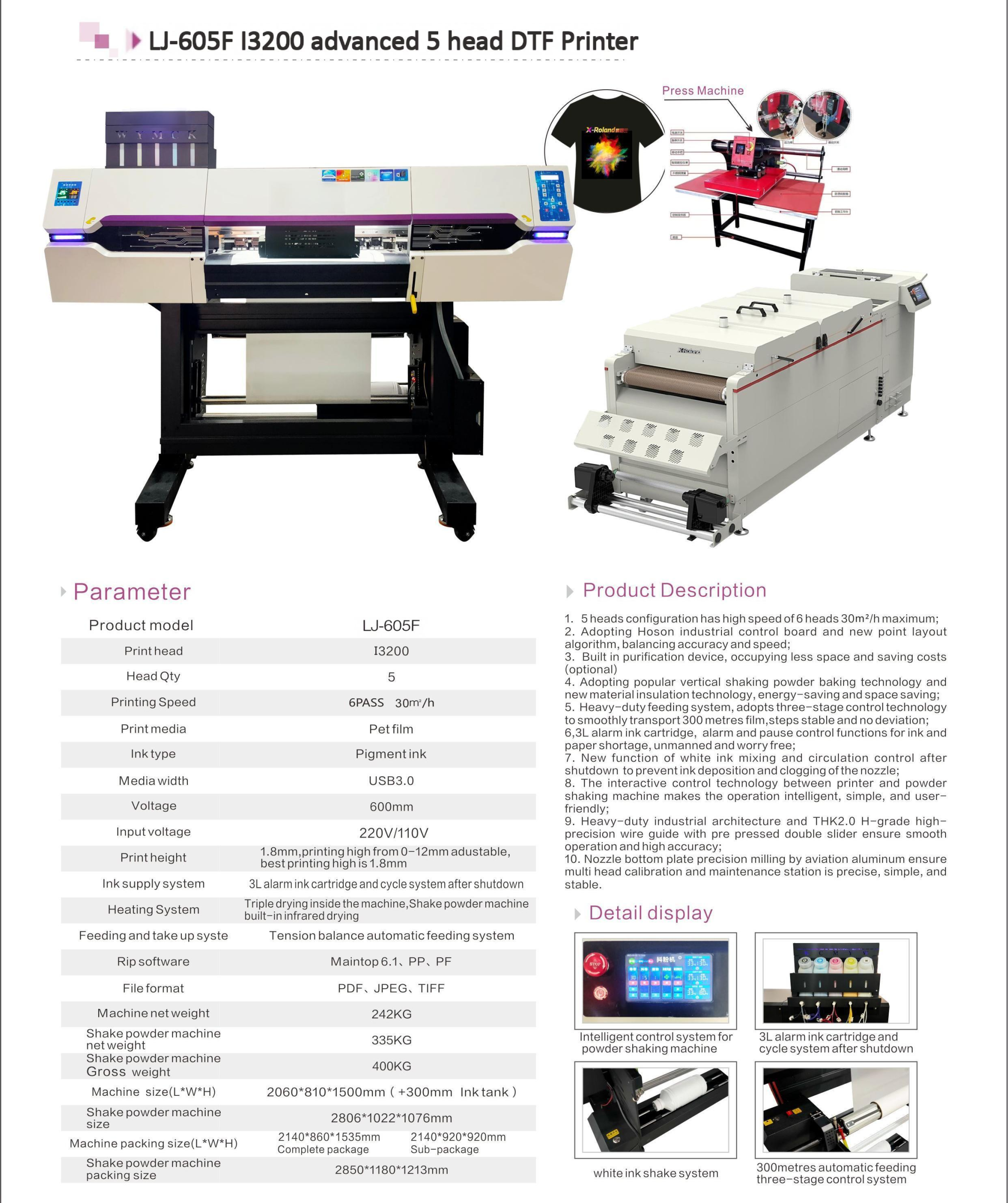 LJ-605F 5 Heads DTF Printer